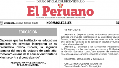 "Semana de la educación tributaria y lucha contra el contrabando" es incorporada en Calendario Cívico Escolar